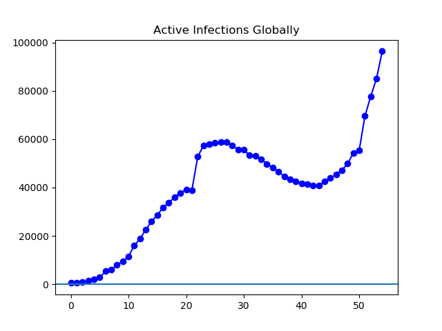 Figure 1. The number of active cases worldwide stands at 96,332, just over double the 47,074 cases reported a week ago.
