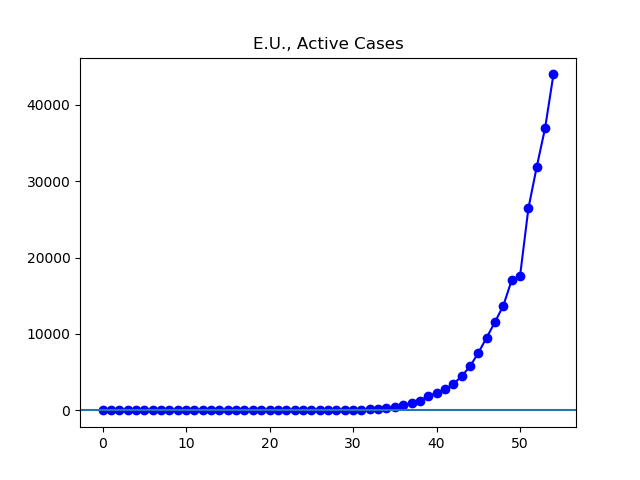 Figure 5. A little over half of the cases in the E.U. are in Italy. The 23,073 cases there are approximately triple the 7985 reported a week ago.