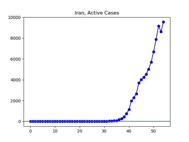 Figure 7. Iran is reporting 9548 cases, about double the 4530 it reported a week ago.