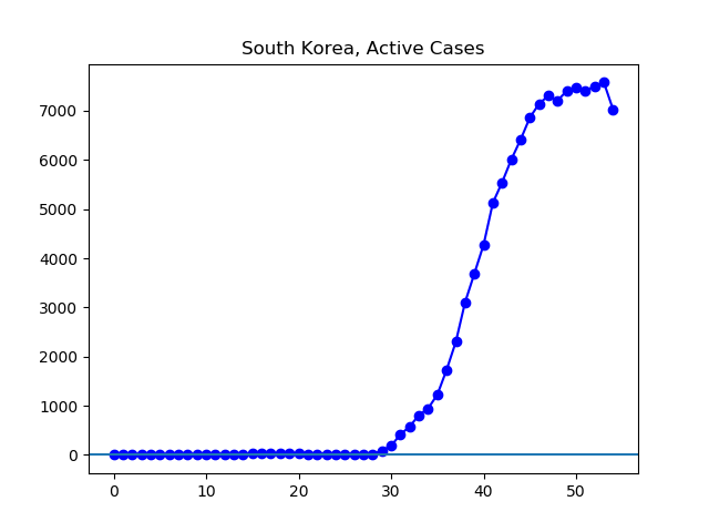 Figure 9. After hanging on a plateau for a while, today it looks like perhaps the South Korean cases are beginning to drop.